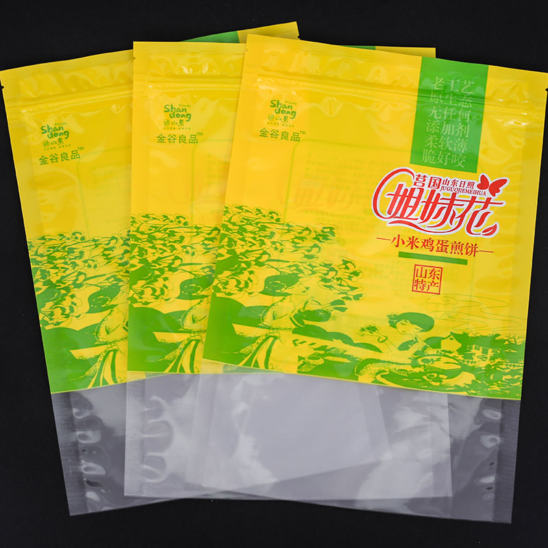 干果杂粮的包装可应用的包装袋类型很广泛,有些大米小米的包装袋可以使用抽真空的包装袋,也可以使用普通的加手提扣的包装袋!干果的包装袋用休闲类的居多,包装袋的印刷图案设计的也比较精美,主要应用于大枣、葡萄干、枸杞、茶叶以及各种干果零食类!